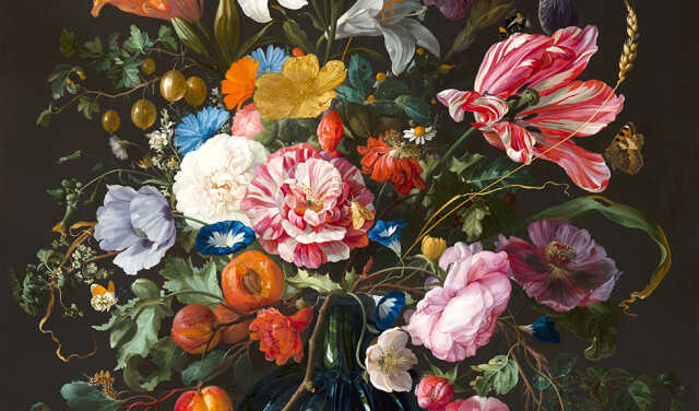 Bouquets, animaux, objets, étoffes composent les natures mortes.