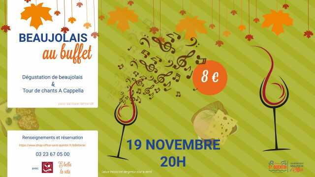 Vous dégusterez 2 beaujolais, sélectionnés spécialement pour vous, par l'Amoureux du vin tout en écoutant le groupe E bella la vista, qui interprètera a cappella quelques standards italiens.