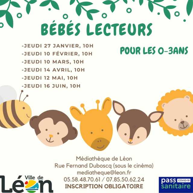 Venez passer un moment de partage et de convivialité tout en faisant découvrir la lecture à vos enfants de 0 à 3 ans. Informations et inscriptions au 05 58 48 70 61. Gratuit.
