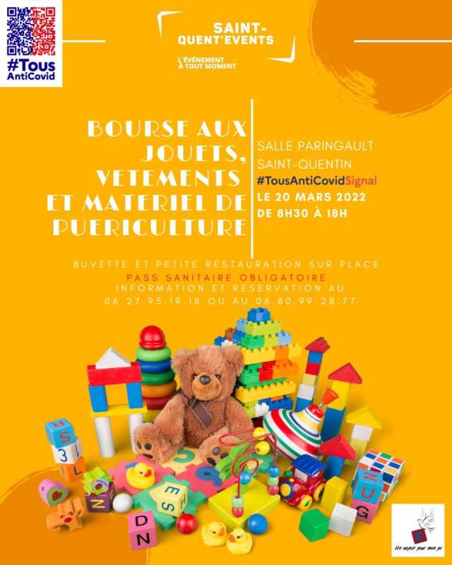 Saint-Quent'Events vous attend nombreux à sa bourse aux jouets, vêtements et matériel de puériculture à la salle Paringault à Saint-Quentin le 20 mars de 8h30 à 18h.