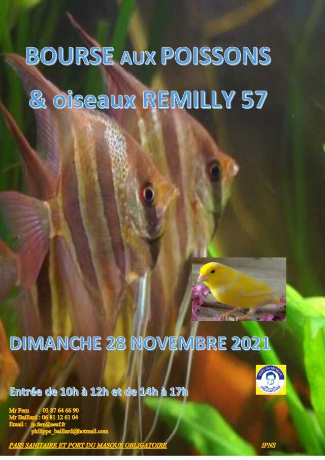 L’AQUA-CLUB DE REMILLY vous informe que sa traditionnelle bourse aux poissons et plantes se tiendra à l’Espace Sports et Loisirs de REMILLY. Les éleveurs seront accueillis de 8h00 à 10 h00. L’entrée de cette manifestation est gratuite. Les visiteurs pourront y trouver de multiples poissons[...]