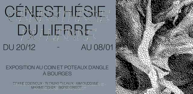 L'exposition Cénesthésie du lierre se compose d'un groupe mixte entre étudiant. e. s et jeunes artistes diplômé. e. s de l'Ensa Bourges. Thiphaine Coignoux / Thomas Thuaux / Kim Ouddane / Maxime Cohen / Boris Grisot