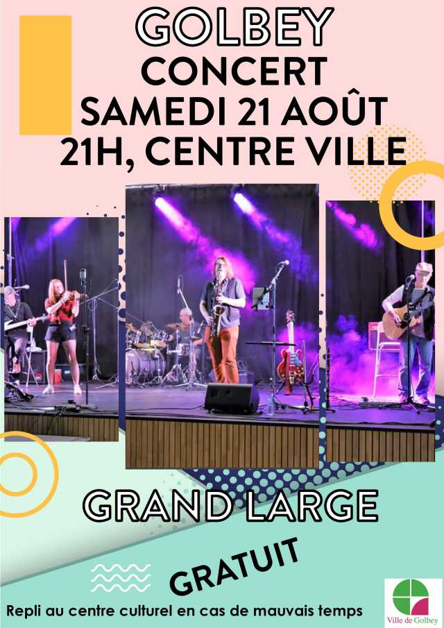 Voguez sur des océans de sonorités celtiques, festives et pas que avec GrandLarge ! Nous vous offrons un voyage aux 4 coins du monde en interprétant avec panache et originalité un panel large de thèmes et chansons de l'univers celtique, et pas que ! Un appel à la danse pour petits et grands et un dépaysement assuré, telle est notre mission ! GrandLarge jettera l'encre à Golbey le 21 août, nouvelle escale de son voyage musical.