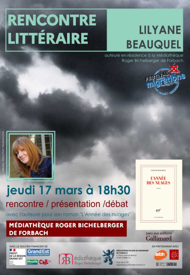 Dans le cadre de l’édition 2022 du « Festival Migrations », le jeudi 17 mars à 18h30, la médiathèque propose, une rencontre littéraire avec Lilyane Beauquel, pour présentation de son ouvrage « l’Année des nuages ».