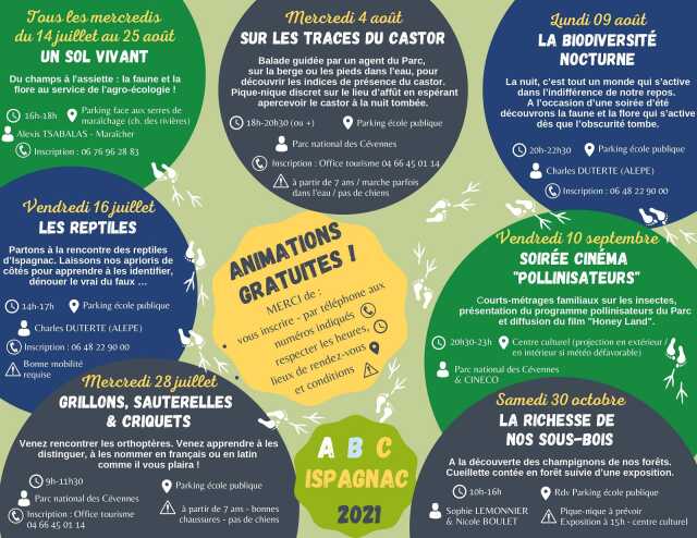 Découvrez les animations de l'ABC d'Ispagnac ! Toutes les animations sont gratuites, et sur réservation.