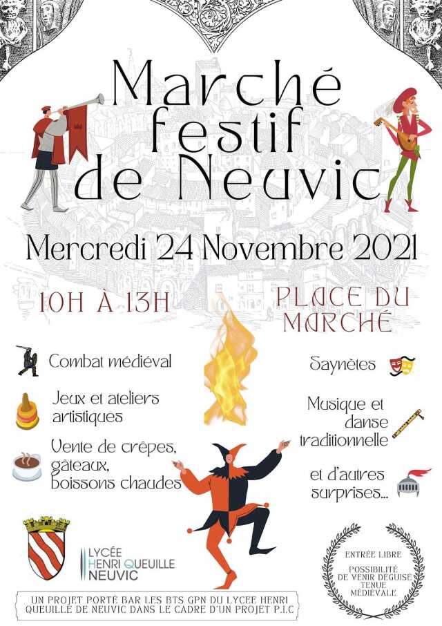 La Mairie de Neuvic organise en partenariat avec les associations neuvicoises et commerçants partenaires son traditionnel marché de Noël avec la présence de producteurs locaux et d'artisans. Animations diverses et restauration sur place.