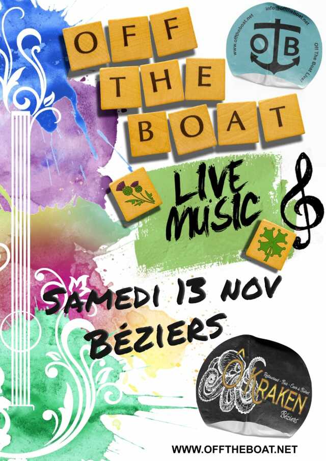 Retrouvez le groupe Off The Boat pour une soirée originale de compositions et de reprises des plus grand standards du répertoire traditionnel écossais, irlandais allant jusqu'au pop / rock moderne.