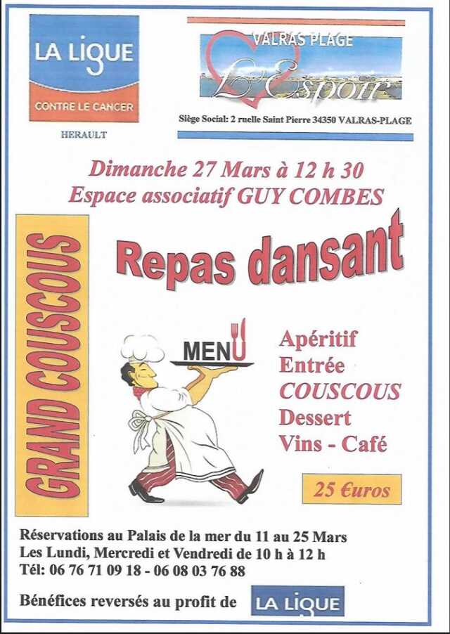 L'association l'Espoir organise un repas dansant dont les bénéfices seront reversés au profit de la Ligue contre le Cancer.