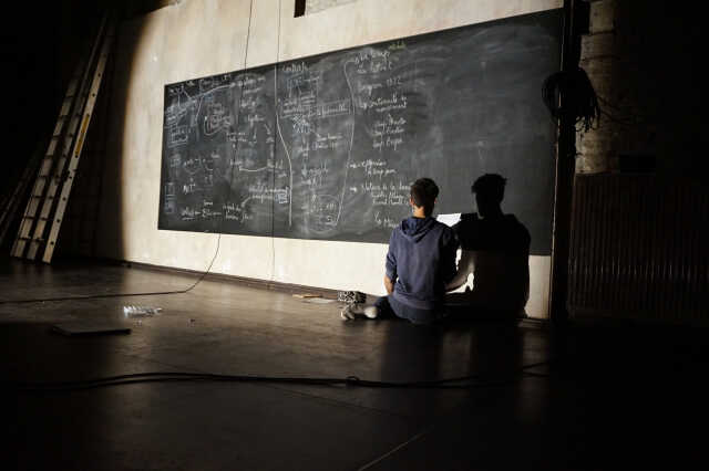 Dans un enchevêtrement de guindes que ne renierait pas un charpentier de marine, se tient un conférencier qui souhaite exposer une étonnante théorie du mouvement, égarée quelque part en sciences physiques et poésie du geste.