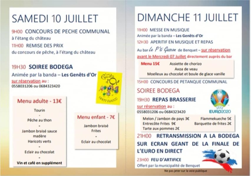Sur réservation au 05 58 03 12 06 ou 06 84 32 34 20