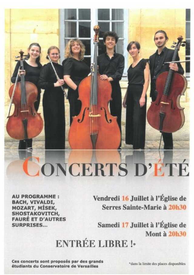 Concert de musique de chambre en duo, trio et quatuor. Au programme : Schubert, Mendelssohn, Farrenc, Faure, Piazzola....