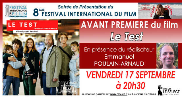 Présentation de la 8ème édition du Festival suivie d'une projection en avant première du film " Le Test " en présence du réalisateur Emmanuel Poulain-Arnaud.