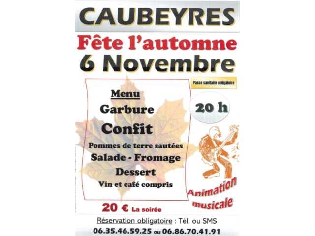 Menu : apéritif Punch, bouillon de poule, entrée, poule farcie et ses légumes, sauce câpres, fromage, dessert, vin et café. Venez danser avec Sud Mélodie.