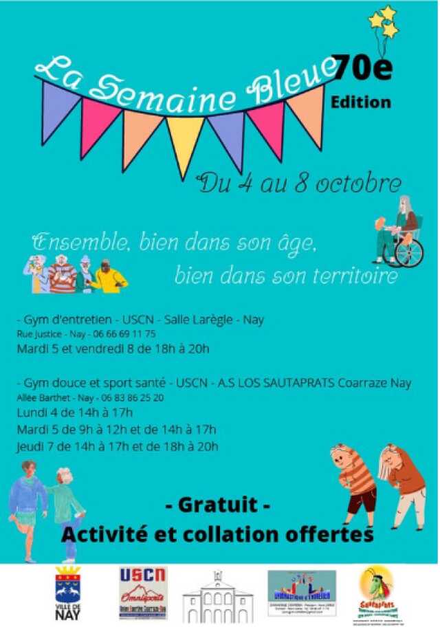 à l'occasion de la semaine bleue, l'Uscn et los sautaprats vous invite à pratiquer la gym douce. Une collation sera offerte aux participants Pour bien vous recevoir : Respect des gestes barrières et des mesures antiCovid19 en vigueur.