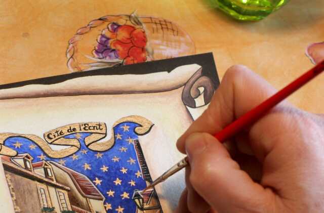 Géants 7/11 ans : atelier enluminure : découvrez l'art médiéval de décorer les manuscrits. Réalisez une miniature sur le thème des animaux fantastiques à l'aide de peinture à base de pigments naturels.