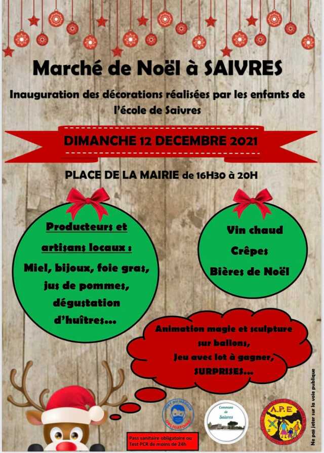 La ville de Saint Martin de Saint Maixent vous propose leurs marché de Noël au stade. Au programme : * Visite du père Noël * Une vente d'objets confectionnés par les enfants * Chant de Noël par les les élèves du groupe scolaire * Restauration et buvette sur place par les associations *[...]