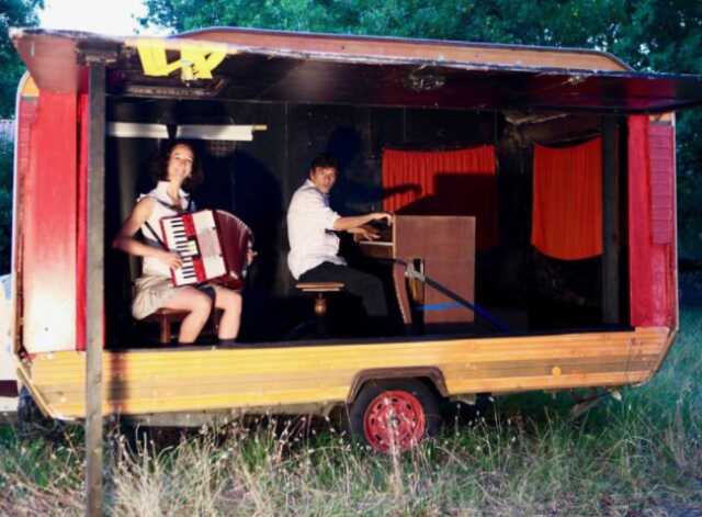 Pascal Pistone (chant, piano, accordéon, contrebassine), Delphine Lavergne (accordéon, clarinette, saxophone, flûte, piano, percussion) et Adèle Pistone (jeune pianiste de 10 ans) chantent et improvisent sur J. Brel, F. Chopin, D. Ellington, G. Gershwin, H. Hancock, J. Kosma, C. Orff, A. Piazzolla, J. Prévert, S. Reich. Du classique au jazz contemporain, du Slam à la chanson, du ciné-concert au théâtre d’impro, ce spectacle déjanté et interactif est un hommage au Jazz, à la chanson, et au cinéma muet d’Harold Lloyd.
