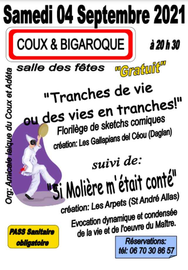 Le comité des fêtes du Coux-Mouzens vous propose une soirée haute en couleurs pour le passage à la nouvelle année ! Rdv le 31 décembre à partir de 20h00 à la salle des fêtes du Coux. Au programme, repas dansant animé par l'orchestre Weekend. Menu par les Traiteurs du Céou : - Soupe de champagne Amuse-bouches[...]