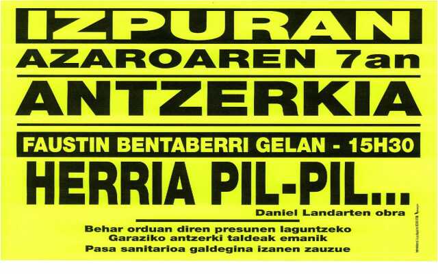 Ce sera l'occasion de découvrir des oeuvres de Patrick Pierart, Gonzalo Etxebarria, Zigor, Pitxu, Ricardo Pascual, Xabi Soubelet, Xabier Celestino, Oaia Peruarena, Juan Manuel Galarraga, Iker Valle, Larraitz Ugartemendia, Bixente Garzia, Christiane Giraud, Mattin Partarrieu, Josette Dacosta,[...]