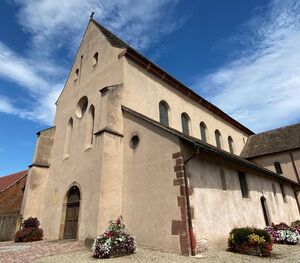 L'actuelle abbatiale Saint Trophime, construite sur les ruines de cette dernière, à la fin du Xe siècle, sera le point central de la visite. Sa présence à fortement marquée l'essor d'Eschau.