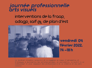 à 14h: Intervention de Camille Triquet (FRAAP - Fédération des réseaux et associations d’artistes plasticiens): « Travailler avec des artistes auteurs : distinguer les situations de collaboration, comprendre et s’acquitter des obligations fiscales et sociales en tant que diffuseur »
