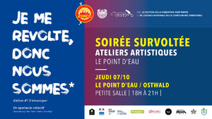 1 soirée, < / strong> < / p> 4 ateliers à découvrir < / strong> ( Théâtre, hip hop, MAO, Vidéo ) < / p> 4 artistes à rencontrer < / strong>... < / p> MAO ( MUSIQUE ASSISTÉE PAR ORDINATEUR )-GEOFFREY BROUMAULT VIDÉO-ÉRIC SCHLAFLANG HIP-HOP-HYACINTHE GAU-LOPEZ THÉÂTRE – ISABELLE MINERY Dans le cadre du lancement des ateliers : « Je me révolte donc nous sommes < / em> » < / strong> < / p> < / p>