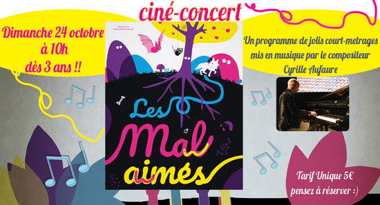 Le Vagabond propose un ciné-concert avec de jolis courts-métrages mis en musique par le compositeur Cyrille Aufaure : " Les mal-aimés ".