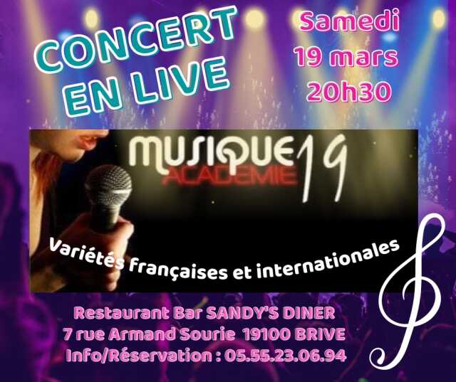 AU SANDY’S !! Avec les élèves de musique académie 19, qui seront en concert avec des reprises d’hier et d’aujourd’hui !!