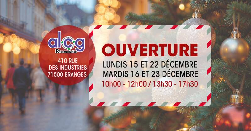 La Recyclerie ouvrira exceptionnellement ses portes les lundis 15 et 22 et mardis 16 et 23 décembre. Nous vous accueillerons de 10h à 12h puis de 13h30 à 17h30. Profitez aussi de 50 % de réduction sur tout le rayon de Noël !