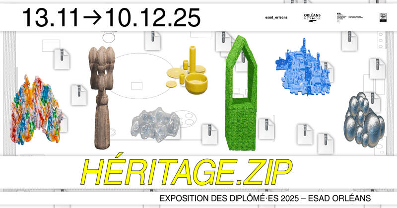 Héritage.zip, c’est une compression des travaux de 17 jeunes diplômé.es qui cohabitent dans la galerie de l’ESAD Orléans. Les œuvres exposées puisent dans la mémoire des matériaux, des techniques et des récits pour faire surgir un ensemble où le souvenir se mêle à la matière.