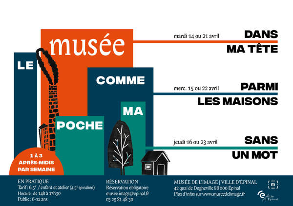 Infos pratiques : Réservation obligatoire. Tarif 6,5€ / demi-journée (4,5€ pour les Spinaliens). Les enfants (6-12 ans) peuvent participer à une, deux séances de leur choix ou même trois ! Les activités sont les mêmes d'une semaine à l'autre. Tout le matériel est fourni. Un goûter est offert. Une tenue adaptée au travail en atelier est à prévoir. Les places sont limitées à 12 personnes.
