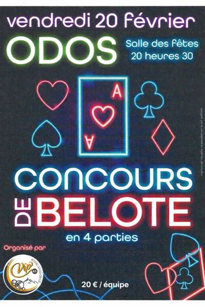 Venez passer une excellente soirée de belote en 4 parties! Les 10 premières equipes au classement seront récompensés.